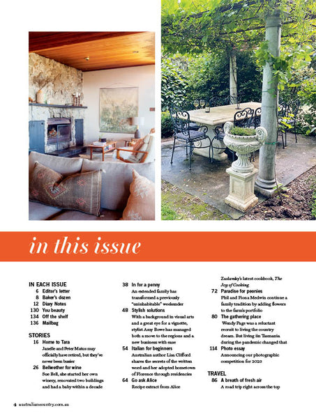 Australian Country Magazine offers real stories from the heartland. We talk to Aussies who are making a real success of country living - going inside the houses, businesses, and lifestyles they are creating. Your dose of contemporary stories from Australian Country Magazine every second month offers an invigorating mix of inspiring people and places.