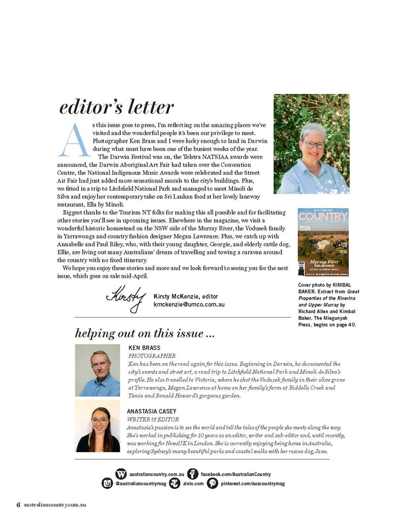Australian Country Magazine offers real stories from the heartland. We talk to Aussies who are making a real success of country living - going inside the houses, businesses, and lifestyles they are creating. Your dose of contemporary stories from Australian Country Magazine every second month offers an invigorating mix of inspiring people and places.