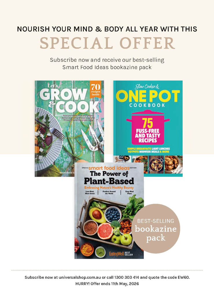 Over 70 recipes EVERY edition of EatWell magazine, packed with great meal ideas that are good for you, easy to cook and taste great! The only recipe magazine in Australia that offers a healthy approach to good food.