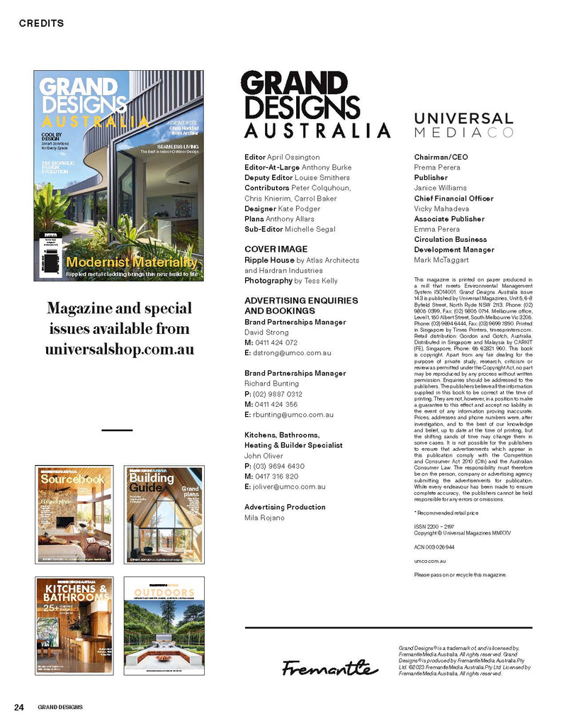 From renovating to building and decorating, Grand Designs Australia is the magazine that will inspire you to transform your house into your dream home. Each issue will feature houses of diverse styles and budgets -- from new builds to flips and renovations.