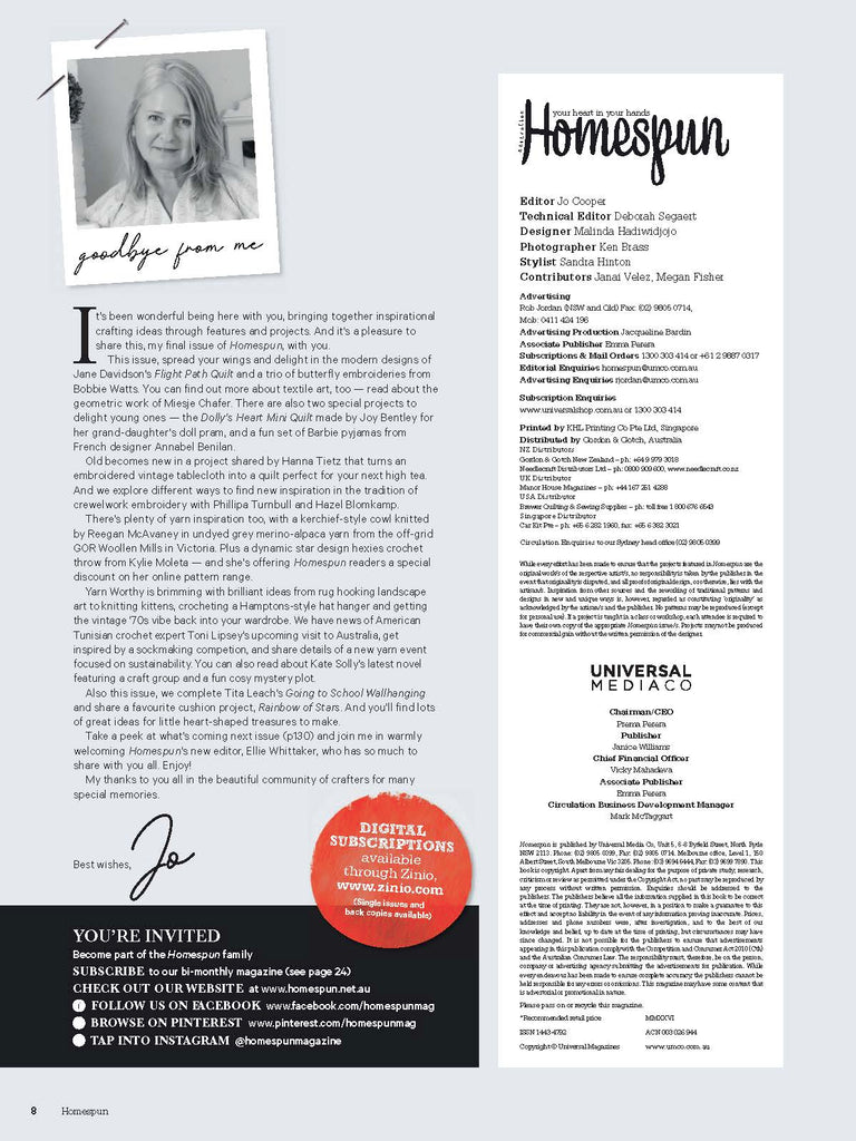 Homespun magazine is the quintessential crafter’s magazine, for all things craft & DIY projects, whether you are a beginner or experienced crafter. Homespun allows you to craft with confidence and creativity.