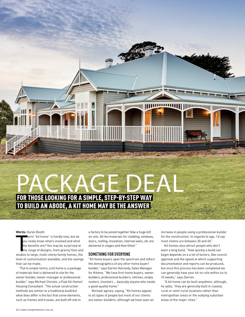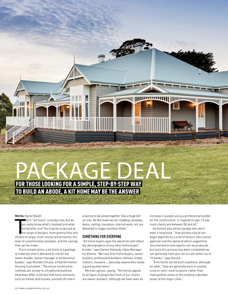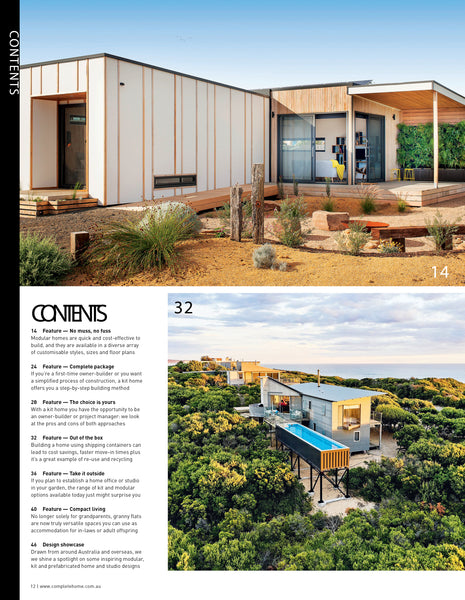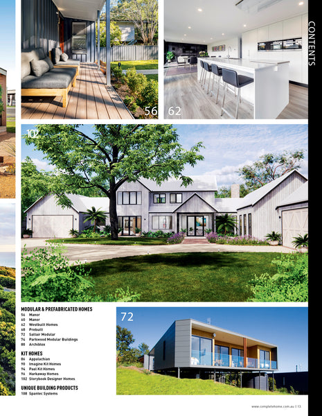 Kit Homes Yearbook displays Australia's best kit and manufactured homes, offering affordable, flexible and convenient housing options for home buyers. The publication inspires its readers with myriad designs as well as details of many well-established kit companies. The dwellings featured in this magazine, both kit and prefabricated, are affordable and cater to the challenges that come with building in rural and coastal areas, as most construction is done off-site. Kit Homes Yearbook allows readers to discover their own perfect home for their suited budget and lifestyle.
