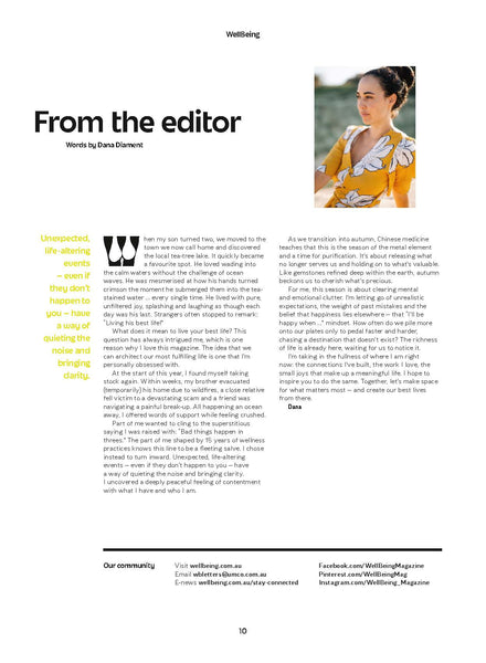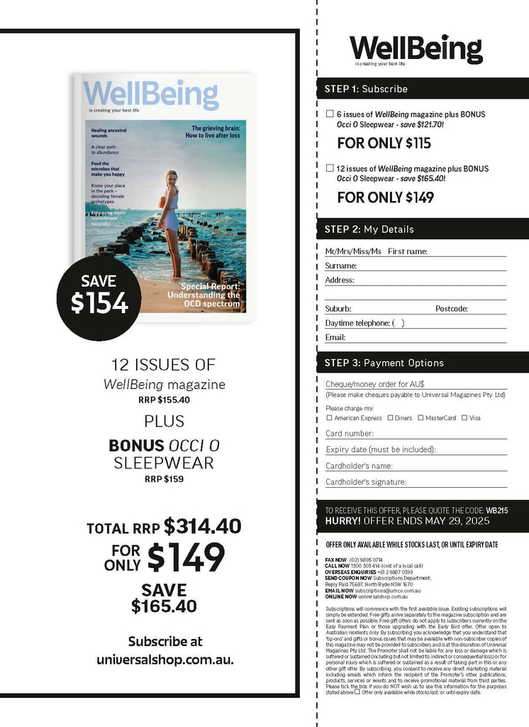 WellBeing Magazine is the authoritative resource on natural health and living for clever, compassionate, curious people who’re seeking an authentic and soulful way of life. Through its informative, practical articles on ethical living, wholefood cooking, environmental affairs, alternative therapies, natural health and yoga, WellBeing has been inspiring and educating for more than 30 years.