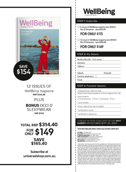 WellBeing Magazine is the authoritative resource on natural health and living for clever, compassionate, curious people who’re seeking an authentic and soulful way of life. Through its informative, practical articles on ethical living, wholefood cooking, environmental affairs, alternative therapies, natural health and yoga, WellBeing has been inspiring and educating for more than 30 years.